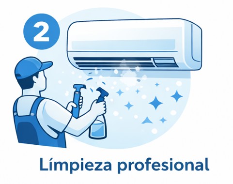 Utilizamos productos especializados biodegradables y herramientas de presión controlada para eliminar hongos, bacterias y suciedad acumulada sin dañar las aletas ni plásticos de tu equipo.